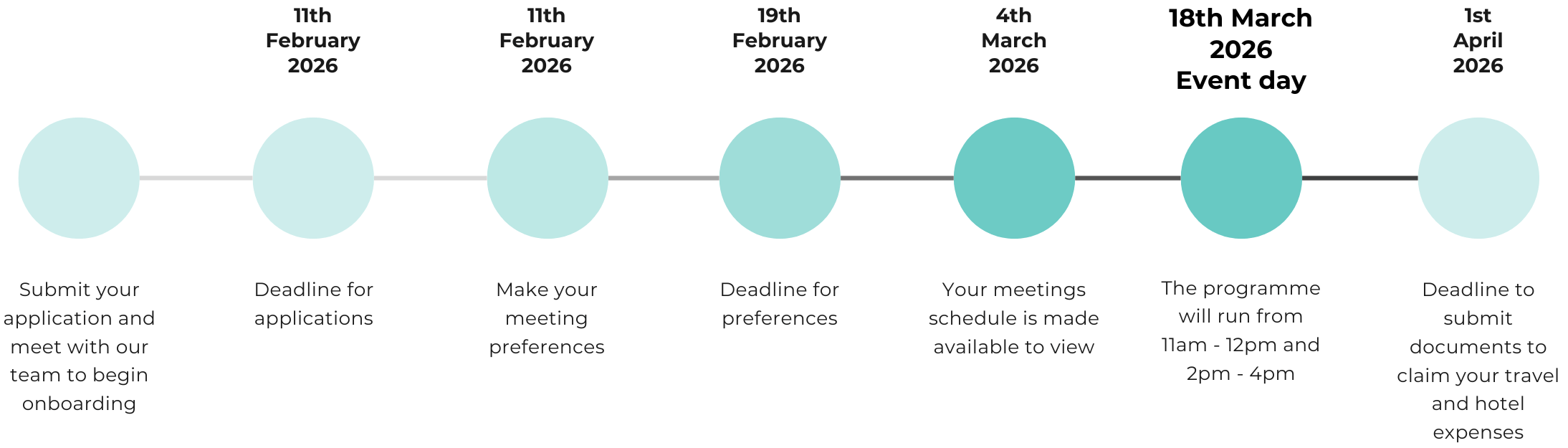 Ahead of the event, all participants will be invited to select companies they would like to meet with. Your meetings are generated based on the preferences you make, to ensure only the highest quality and most relevant meetings are scheduled.